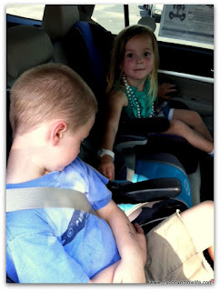 A little snug, but it totally worked. Then Junius proved that having the extra booster seat wedged into the middle wouldn't interfere with his comfort by promptly falling asleep during the test drive. Seriously, he just turns his head to the side and starts snoring.